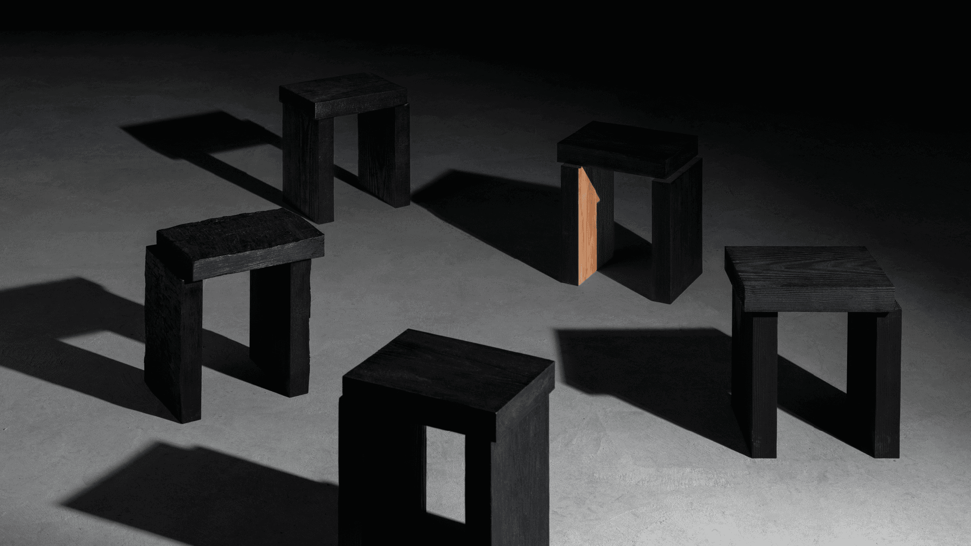 product page↗Burning is one of the important elements in this exhibition. Gazing into the flames is one of the earliest meditative experiences of mankind. Even now, fire still strongly attracts us. However, the Shou Sugi Ban technique offers a different aesthetic experience. The wood is not reduced to ashes but instead becomes more robust. Shou Sugi Ban reveals a profound blackness, symbolizing resilience reborn from fire. In the midst of destruction, we are able to reconstruct.